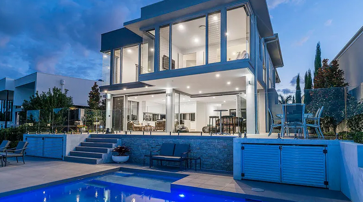 Art Contemporary, modern home inspired by luxury and simple elegance positioned on the exclusive Fairway Island and located within the prestigious and secure gated community of Hope Island Resort..